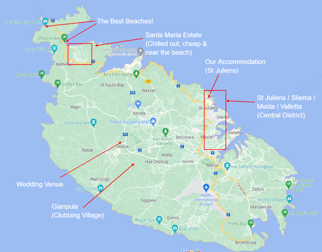 The good news is that all areas in Malta are safe for tourists, we are super friendly!!